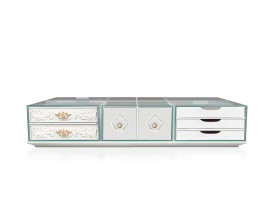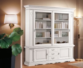 Exkluzívna masívna nízka vitrína Lyon s dvoma sklenenými dvierkami a párom zásuviek 146cm