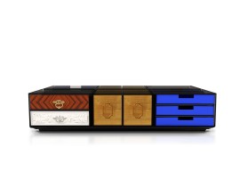 Luxusná nízka vitrína Rodas v masívnom vyhotovení so sklenenými dvierkami, s jednou zásuvkou a párom masívnych dvierok 140cm