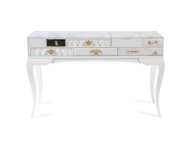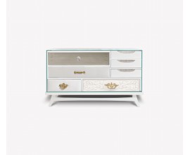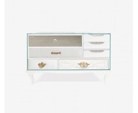 Luxusná obdĺžniková art deco zrkadlová komoda Amarante so štyrmi zásuvkami v bielej farbe 115 cm