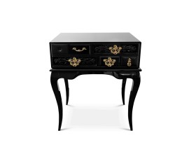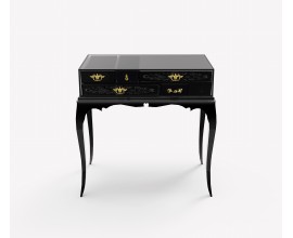 Luxusný art deco masívny čierny konferenčný stolík Kuzor s poličkou a kovovými nožičkami so sklenenou doskou 100 cm