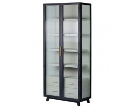 Luxusná moderná ľavá vysoká vitrína Estoril so sklenenými a masívnymi dvierkami a zásuvkami 153cm