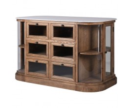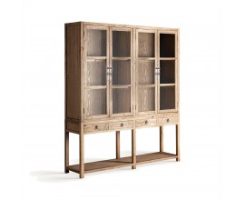 Luxusný obdĺžnikový rustikálny štvordverový príborník Alex so sklenenými dvierkami v hnedej farbe 180 cm