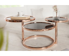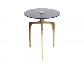 Art deco zlatý okrúhly príručný stolík Naselam s ohnutými kovovými tyčami s vrchnou sklenenou čiernou doskou 60 cm