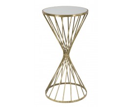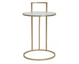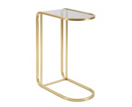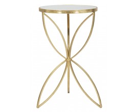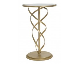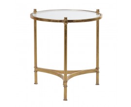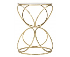 Art-deco okrúhly príručný stolík Eloisse do obývačky so zlatou konštrukciou a sklenenou povrchovou doskou 38cm