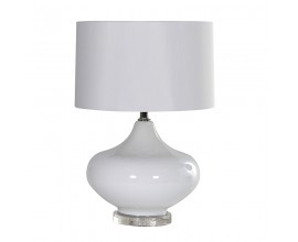 Štýlová sklenená stolná lampa Clasico s nohou v podobe priesvitnej nádoby s valcovým béžovým tienidlom 60 cm