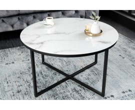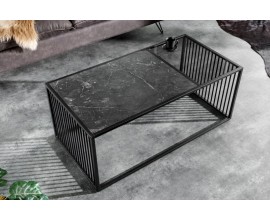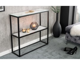 Industriálna konzola Industria Marbleux so sklenenou doskou v prevedení biely mramor s čiernou kovovou konštrukciou 81cm