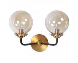 Art deco glamour nástenná lampa Argus s kovovou čierno-zlatou konštrukciou a guľatými tienidlami z dymového skla 350cm