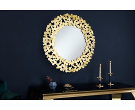 Art deco závesné zrkadlo Flovia okrúhleho tvaru so zlatým kovovým rámom vytvoreným z okrúhlych lupeňov 82cm
