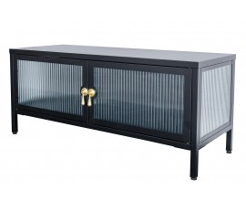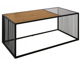 Industriálny konferenčný stolík Westford s kovovou čiernou konštrukciou a vrchnou doskou zo skla 100cm
