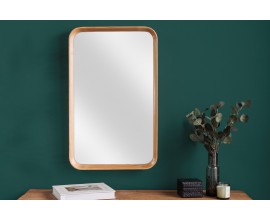 Moderné dizajnové asymetrické nástenné zrkadlo Courbé organického tvaru so svetlým hnedým masívnym rámom 105 cm