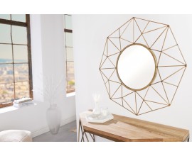 Art deco okrúhle nástenné zrkadlo Euphoria so zlatým kovovým rámom s geometrickým vzorom a hladkým lesklým povrchom 85 cm