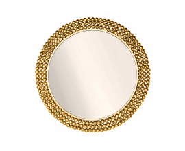 Dizajnové glamour okrúhle nástenné zrkadlo Keening s kovovým zlatým rámom 50 cm
