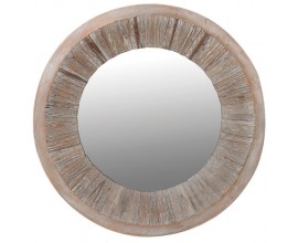 Vidiecke okrúhle vintage nástenné zrkadlo Rueda s dizajnom kolesa s rámom z bieleného dreva svetlá hnedá 75 cm