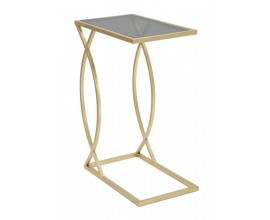Art deco obdĺžnikový zlatý kovový geometrický príručný stolík Magnus s vrchnou sklenenou priehľadnou doskou 60 cm