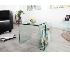 Dizajnový moderný sklenený štvorcový konferenčný stolík Ghost s priehradkou s oblými hranami 50 cm