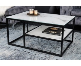 Moderný biely okrúhly konferenčný stolík Industria Marbleux s mramorovým vzhľadom s čiernou kovovou podstavou 80cm