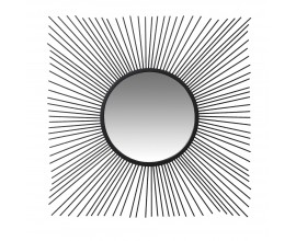 Moderné čierne nástenné zrkadlo Rovenna so štvorcovým rámom s dizajnom slnečných lúčov 110cm
