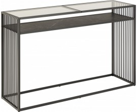 Industriálny moderný čierny televízny stolík Industria Durante s dvojitými dvierkami a sklenými rebrovanými výplňami 90 cm