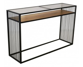 Dizajnový set dvoch industriálnych konferenčných stolíkov v čiernom prevedení Nadja z kovu, dreva a skla