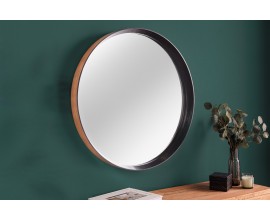 Moderné okrúhle nástenné zrkadlo Courbé s vyvýšeným rámom z dubového dreva v čiernej a prírodnej hnedej farbe 70 cm