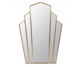 Art deco závesné zrkadlo Auri s atypickým oválnym tvarom a zlatým kovovým rámom so zadnou dyhovanou výstužou 74 cm