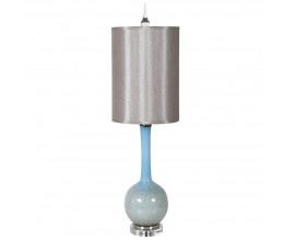 Štýlová sivá sklenená stolná lampa Matilda s bielym valcovým ľanovým tienidlom 69 cm