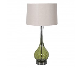 Štýlová zelená stolná lampa Dariele s sklenenou podstavou a textilným tienidlom 65cm