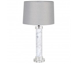 Luxusná mramorová stolná lampa Lira s valcovitou bielou mramorovou nohou a ľanovým tienidlom v svetlosivej farbe 72 cm