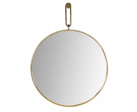 Art deco zrkadlo Auri s plastickým asymetrickým zlatým rámom a okrúhlym tvarom s dyhovanou výstužou na zavesenie 52 cm