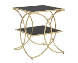 Art deco štvorcový dvojitý príručný stolík Damin s dvomi sklenenými doskami nad sebou s kovovou zlatou konštrukciou 60 cm