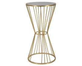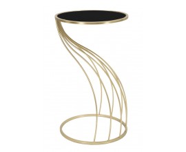 Luxusný art deco príručný stolík Marietta so zlatou ozdobnou podstavou a čiernou okrúhlou vrchnou doskou 65cm