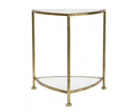 Art Deco príručný stolík Celestia s kovovou konštrukciou a sklenenými doskami v zlatej farbe a geometrickým dizajnom 71 cm