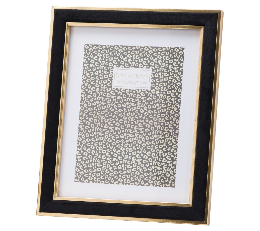 Art-deco luxusný zamatový fotorámik Bolmente v čiernej farbe so zlatým prvkom 8x10