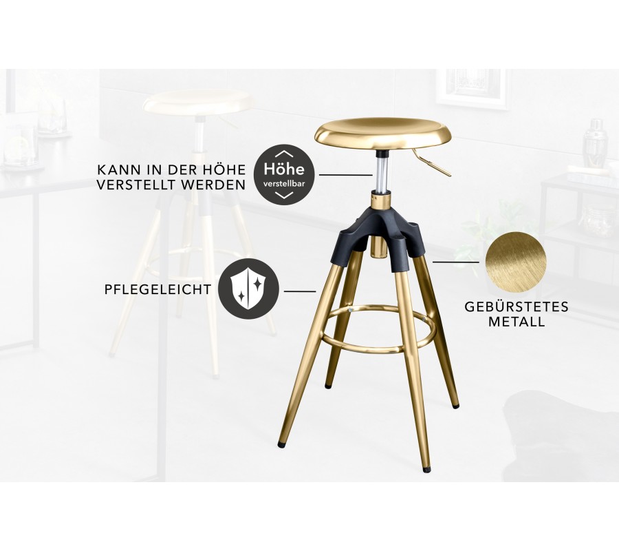 Dizajnová barová stolička Zalias v zlatej farbe 74-82 cm