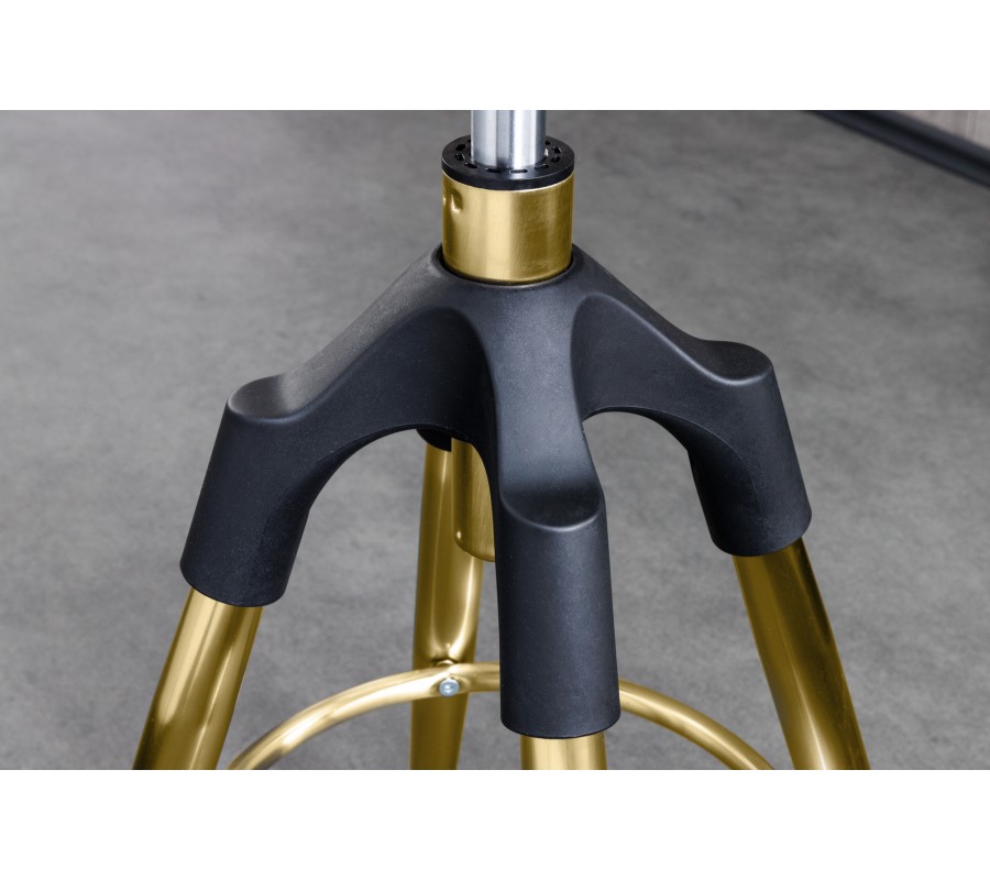 Barová stolička Zalias má pútavú zlatú farbu, ktorá sa hodí do art deco a moderných interiérov. Jej výstrednosť ale zároveň jednoduchosť zharmonizuje vašu či už jedáleň alebo barový pult za ktorý stoličku uložíte. Výhodou tejto stoličky je jej výškovo nastaviteľná funkcia, ktorú si usmerníte podľa vašich preferencií. Dizajn barovej stoličky Zalias pôsobí umeleckým dojmom. Takýto dizajn sa využíva najmä pri kresliacich či hudobných stoličkách, ktoré poskytujú umelcom efektívny pohyb pri vstávaní z nej. A preto o to zvláštnejšia bude vaša jedáleň alebo barový pult s touto barovou stoličkou Zalias.