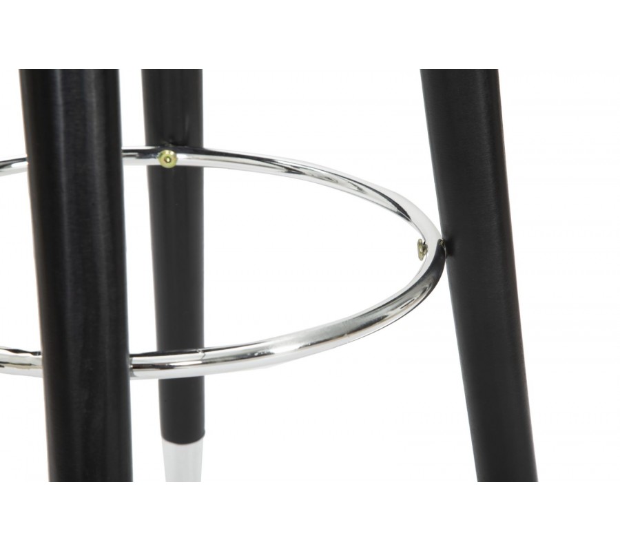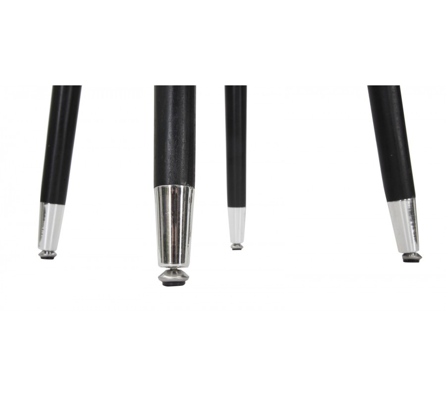 Stolička stojí na štyroch pevných čiernych nohách, ktoré sa smerom nadol zužujú a elegantne prechádzajú do strieborného zakončenia. Tento sofistikovaný dizajn ju predurčuje na využitie v moderných baroch, elegantných kuchynských ostrovčekoch alebo štýlových jedálňach. Výborne sa kombinuje s mramorovými a sklenenými stolmi, lesklými kovovými prvkami, ako je chróm alebo nerezová oceľ, a tiež s tmavými drevenými doplnkami, ktoré vytvárajú harmonický kontrast. Je ideálnou voľbou pre interiéry, ktoré vyžadujú nadčasový dizajn s dôrazom na noblesu a detail.