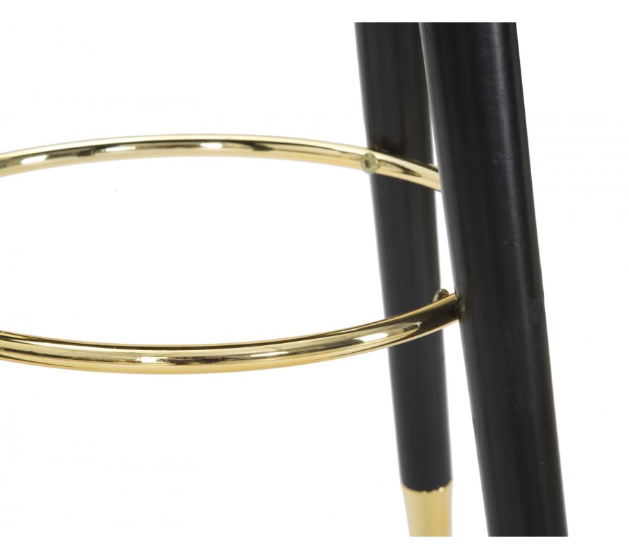 Art deco glamour barová stolička Laurentia s čiernym zamatovým sedadlom so zlatým detailom a čiernymi kovovými nožičkami 74 cm