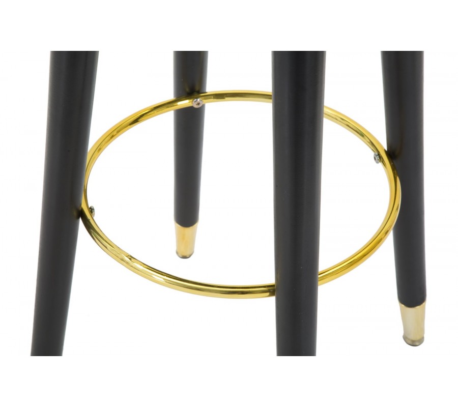 Stojí na štyroch štíhlych čiernych nožičkách, ktoré majú jemne kónický tvar a dodávajú stoličke eleganciu. Zlaté zakončenie nožičiek a kovový kruh na oporu nôh nielen skrášľujú dizajn, ale zároveň pridávajú stabilitu a komfort pri sedení.