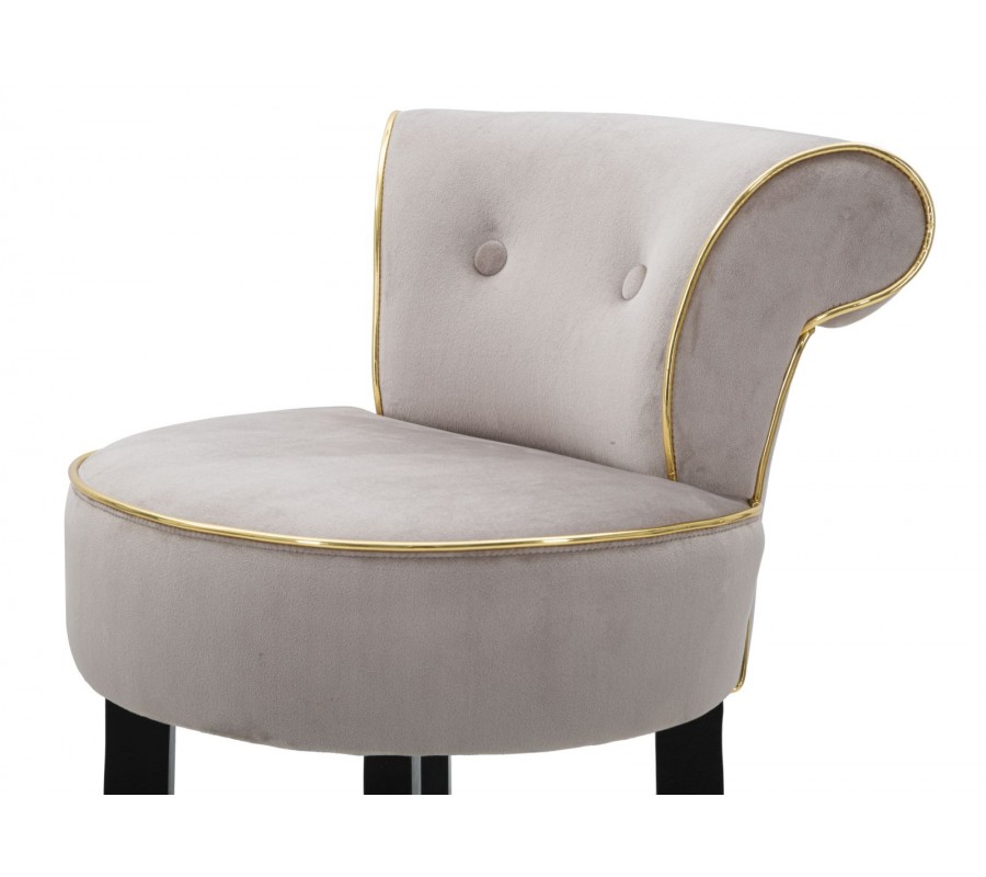 Barová stolička Vivienne v sofistikovanom sivom prevedení predstavuje kombináciu glamour elegancie, art deco štýlu a prvkov zámockého dizajnu. Vďaka svojím prepracovaným detailom prináša do interiéru nádych luxusu.