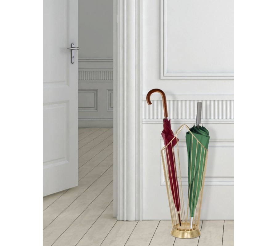 Vďaka glamour a art deco dizajnu sa tento elegantný stojan skvele hodí do predsiene, vstupnej haly alebo kancelárie. Jeho zlatý povrch sa výborne kombinuje s mramorovými, sklenenými či zamatovými doplnkami v interiéri. Perfektne doplní luxusne zariadené priestory a pridá im dotyk noblesy a exkluzivity.
