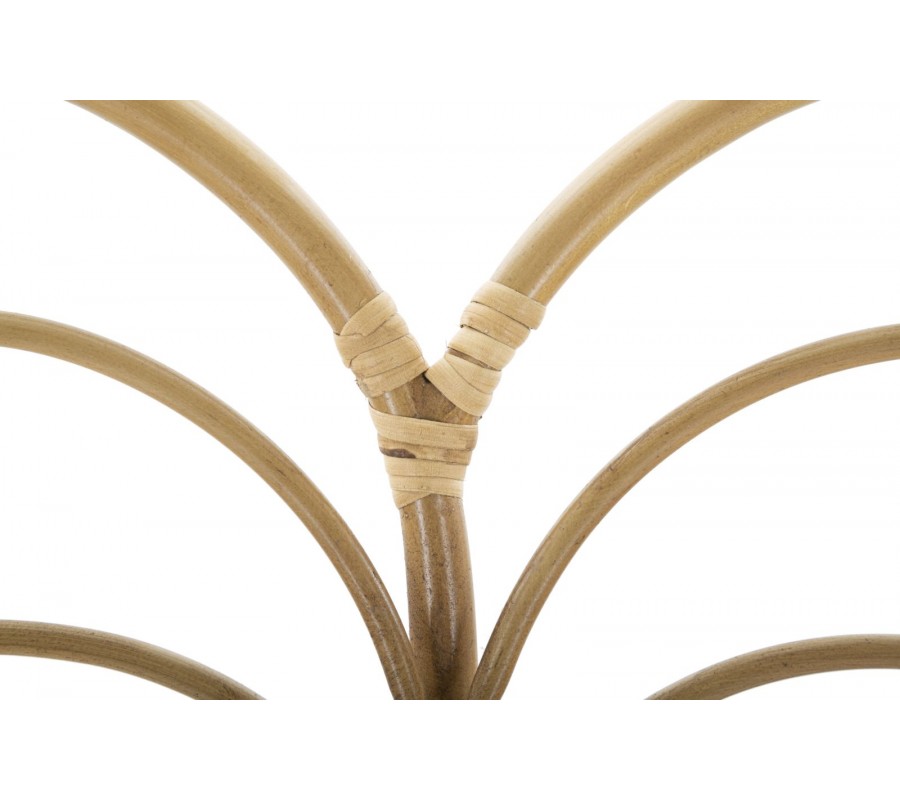 Celkový dizajn pozostáva z harmonicky usporiadaných oblúkov, ktoré svojím vrstvením vytvárajú dojem lupeňov kvetu alebo rozvíjajúceho sa vejára. Vďaka svojmu precíznemu spracovaniu pôsobí vzdušne a sofistikovane. Lupene sú dekoratívne zviazané svetlým hnedým ratanom.
