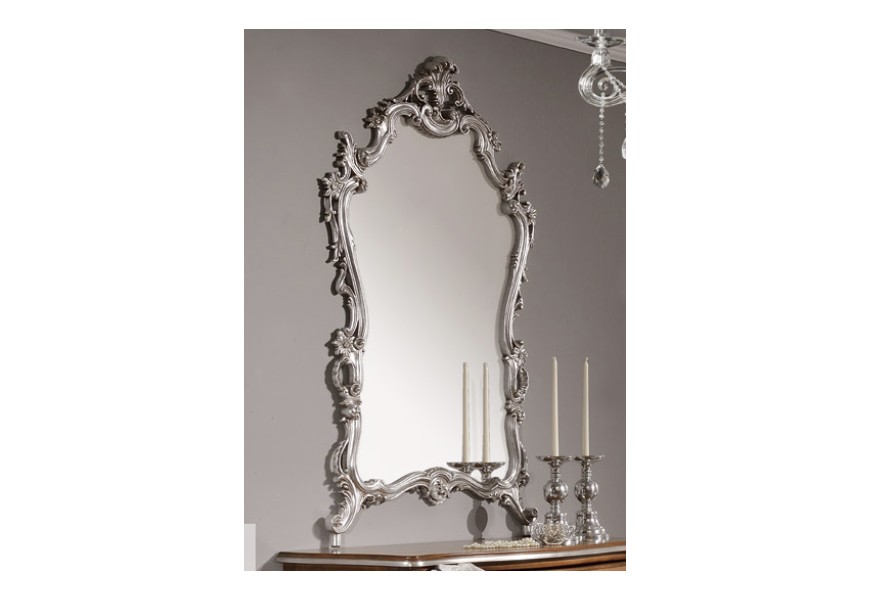 Luxusné nástenné zrkadlo Belladonna so strieborným ozdobným rámom z kovu 165cm