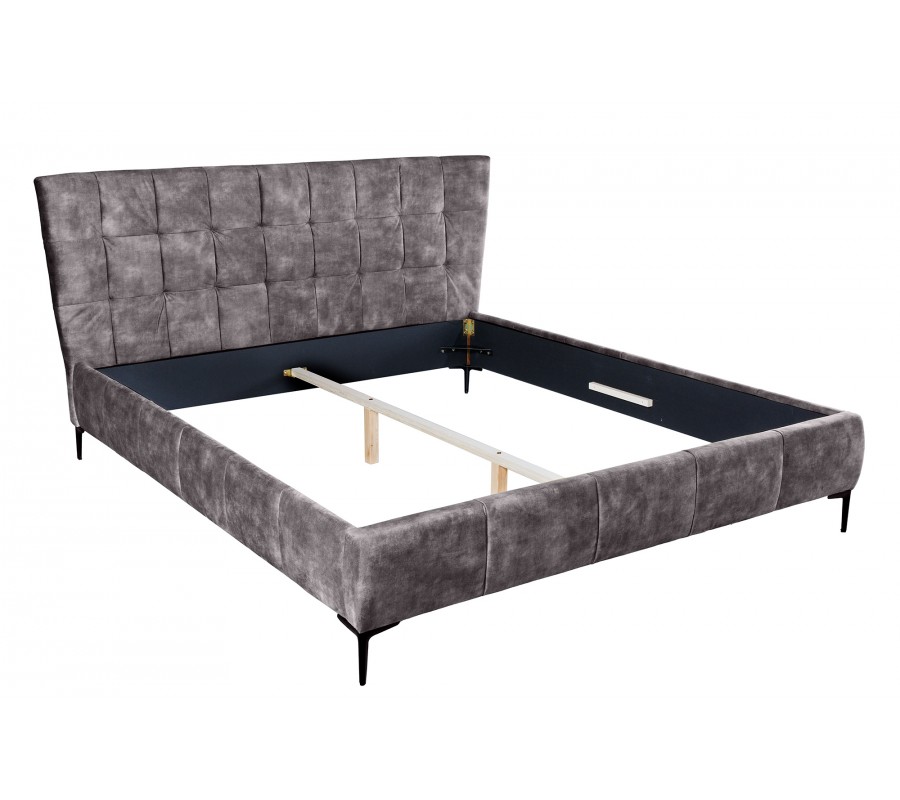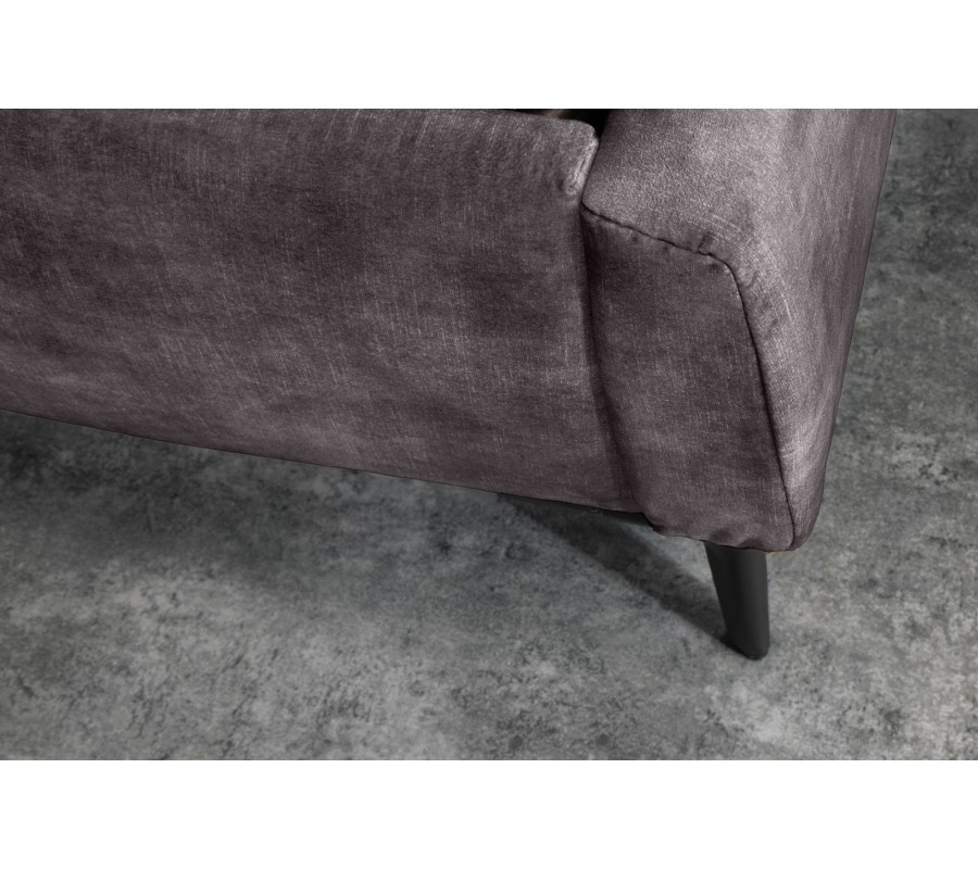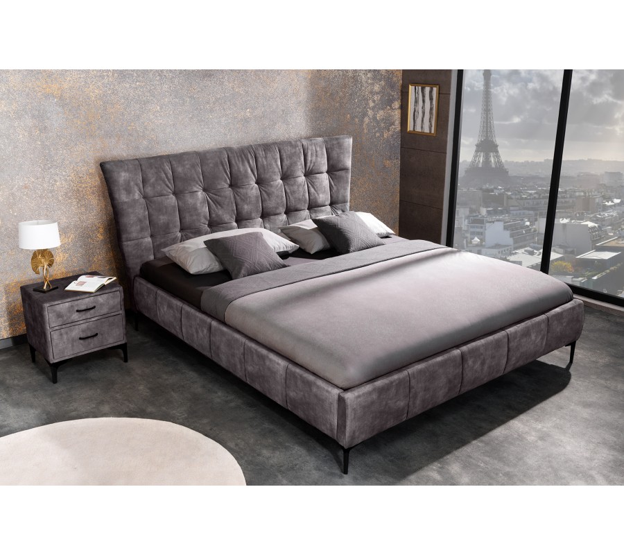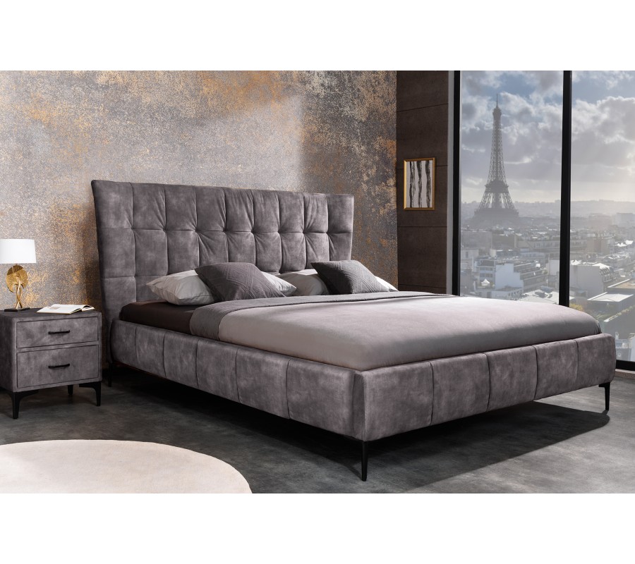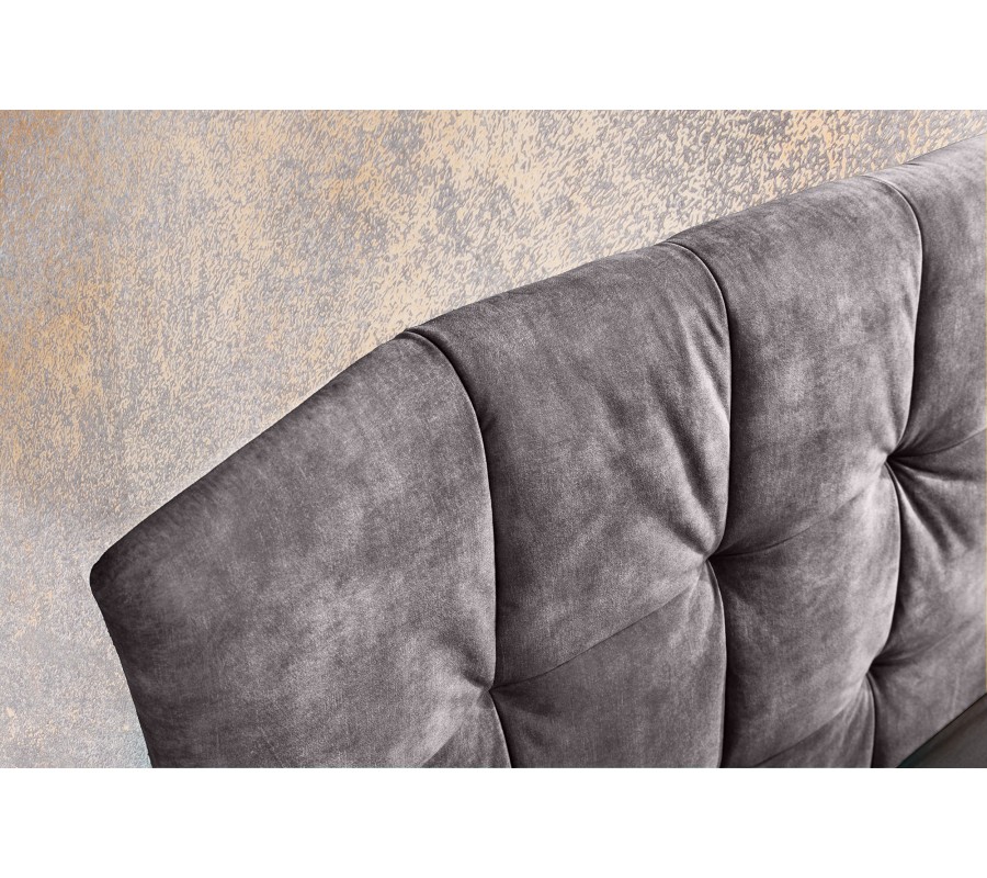 Dizajnovej manželskej posteli Velouria na prvý pohľad dominuje čelo s ozdobným chesterfield prešívaním, ktoré sa mierne rozširuje smerom hore. Zamatový poťah je vyrobený s mikrovlákna a tento na dotyk príjemný materiál v kombinácii s mäkkým čalúnením vytvára útulné a pohodlné záhlavie postele, o ktoré sa môžete oprieť. Ozdobné prešívanie dodáva posteli nádych elegancie a luxusu. Rám je vyrobený z kvalitného a pevného borovicového dreva, tiež čalúnený na vonkajších stranách. Posteľ má kovové nožičky s čiernym práškovým nástrekom, ktorý im dodáva matný vzhľad. To vám umožňuje zakomponovať do spálne ďalší nábytok s podobnými kovovými prvkami, ale tiež ju môžete doplniť nočným stolíkom s kolekcie Velouria, ktorý nájdete v našej ponuke. Vhodný je tiež moderný nábytok s čistými líniami, pri ktorom vynikne unikátne čelo postele. Tmavošedú farbu odporúčame doplniť neutrálnymi odtieňmi šedej, čiernej či bielej, čím získa vaša spálňa nadčasový a moderný dizajn.