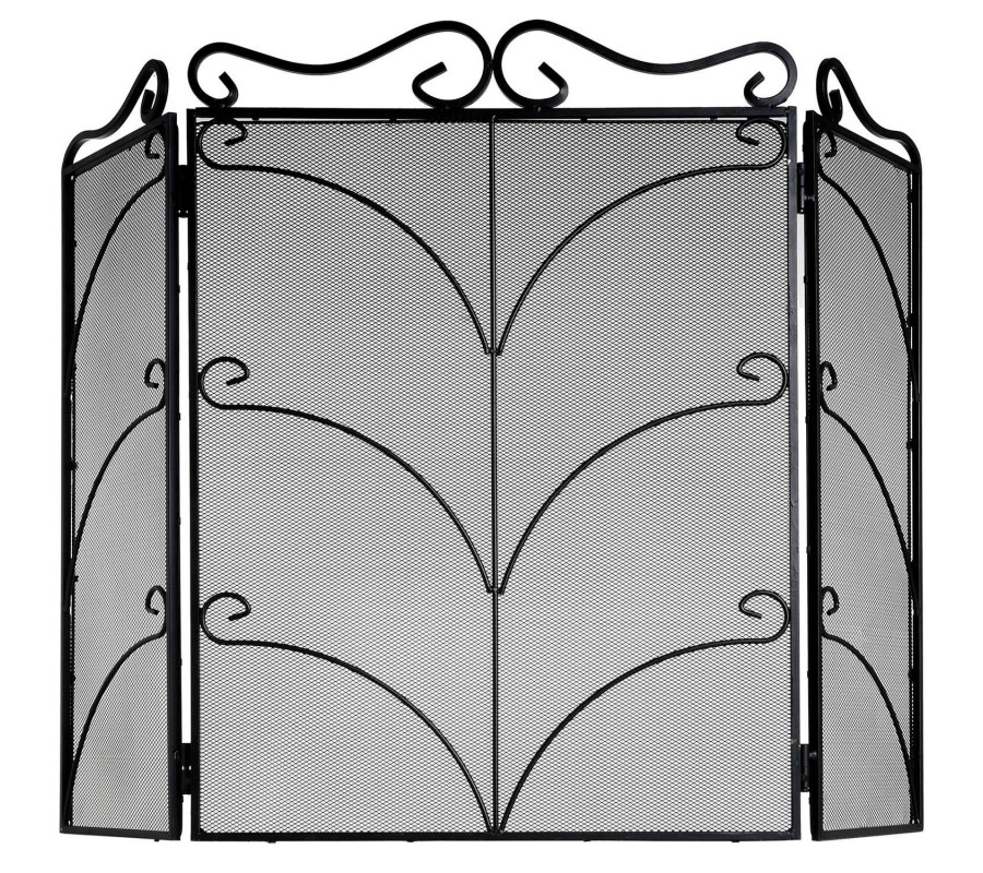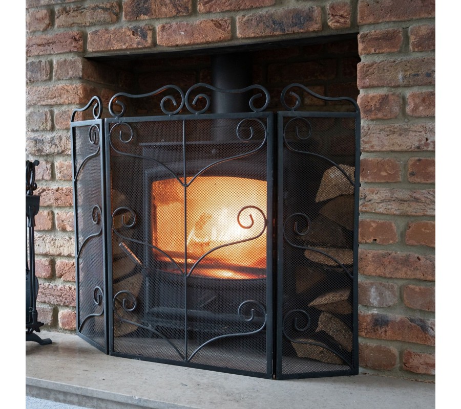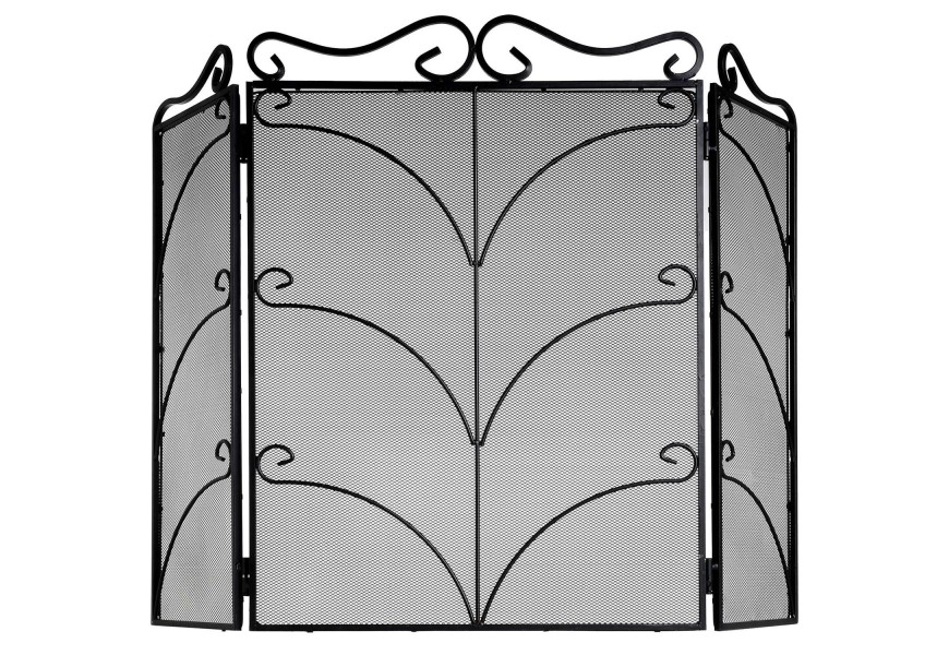Dizajnová klasická ochranná mriežka pred krb Florance so zdobením so zatočenými líniami z kovu v čiernej farbe 75 cm