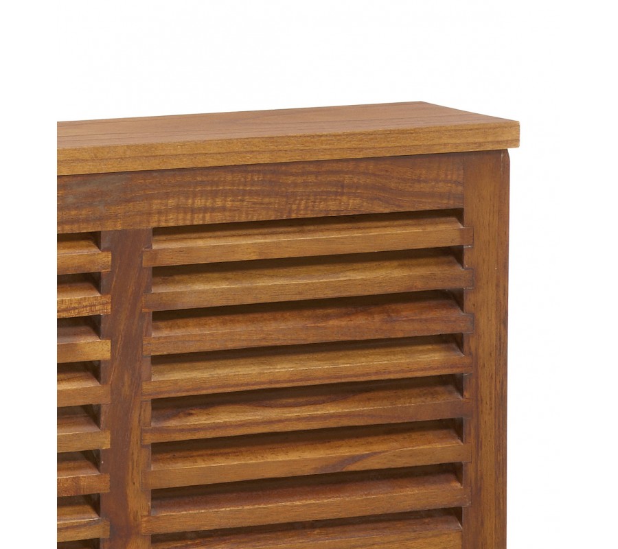 Elegantný kryt na radiátor z našej kolekcie koloniálneho nábytku Star je vhodným kúskom do klasicky ladených priestorov.  Ide o ručne vyrábaný kúsok vyrobený z masívneho dreva mindi, pričom na povrchu možno vidieť jeho prirodzenú kresbu. Príjemná hnedá farba poľahky zapadne do rôznofarebne ladených priestorov a dá sa štýlovo doladiť doplnkami v naturálnych farbách.