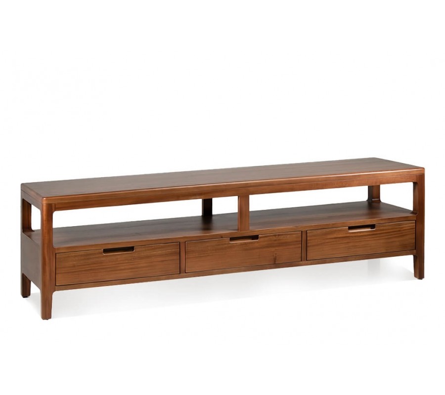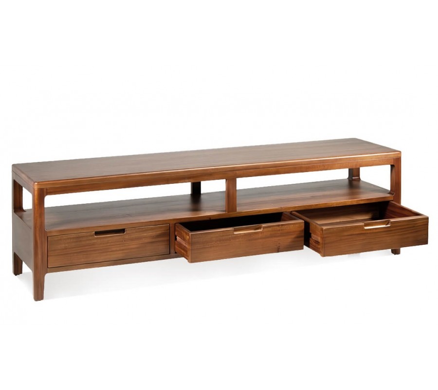 Luxusný koloniálny TV stolík Liberia s policou a tromi zásuvkami v hnedej farbe z masívneho mahagónového dreva 160 cm