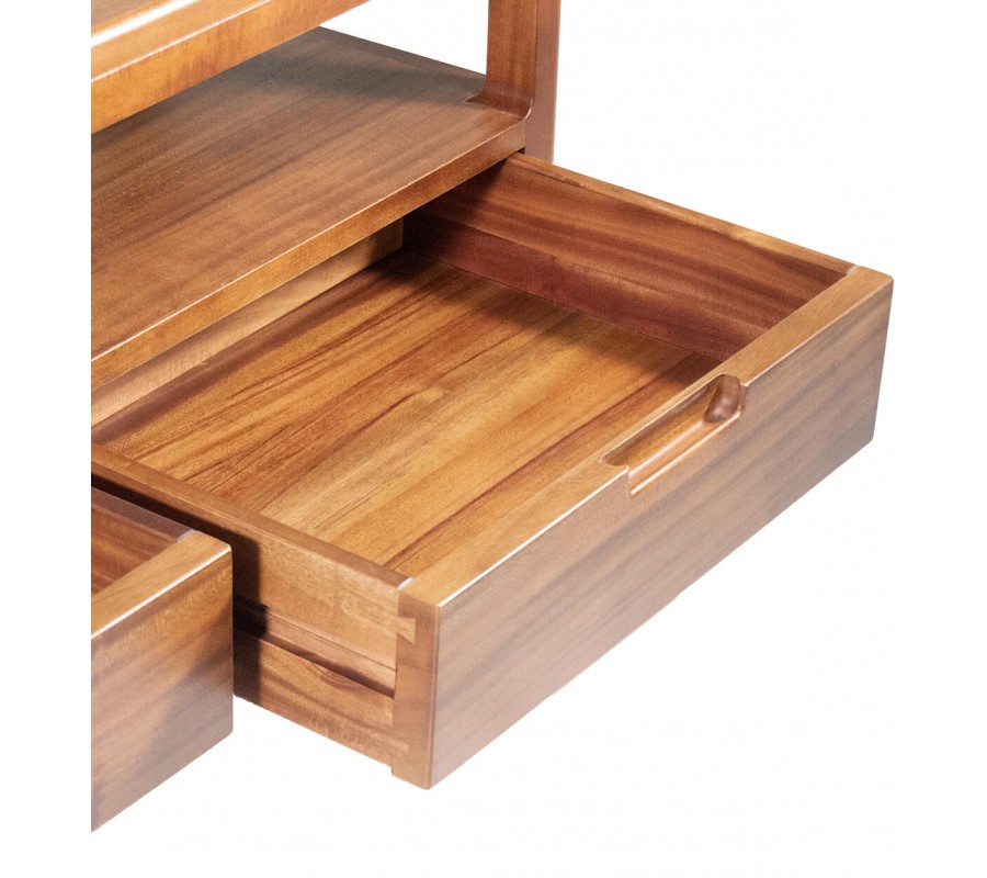 Televízny stolík je vyrobený z masívneho mahagónového dreva. Jeho špecifická hnedá farba s červenkastým nádychom dodáva nábytku nádych koloniálneho štýlu. Táto luxusná drevina je obľúbená aj kvôli svojej vysokej tvrdosti, vďaka čomu nábytok výborne odolná vplyvom každodenného používania a ostane dlho krásny.