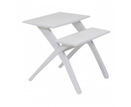 Pre lesklý a nadčasový nábytok je taktiež charakteristický tvarový minimalizmus a čistota bez výrazných dekoratívnych prvkov, ktorá je často umocnená použitím hladkých a čistých materiálov ako napríklad skla, kovov či lakovaného MDF.