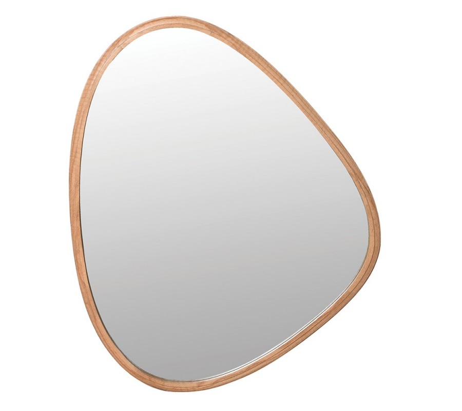 Dizajnové nástenné zrkadlo Flaque vás na prvý pohľad upúta svojím moderným asymetrickým tvarom, ktorý pripomína trojuholník so zaoblenými rohmi. Zvýrazňuje ho tenký rám z dubového dreva s ozdobným drážkovaním. Vďaka absencii hrán vytvára zrkadlo pocit zenovej harmonickej plynulosti, ktorú ešte posilňuje prírodná svetlá farba rámu. Zrkadlo môžete umiestniť do predsiene spolu s konzolovým stolíkom alebo do spálne nad toaletný stolík. Vhodná je kombinácia s masívnym nábytkom v teplých svetlejších odtieňoch a so zelenými rastlinami. Atypický tvar pomôže tiež oživiť vašu kúpeľňu. Drevený materiál vám pomôže vniesť do priestoru prírodný nádych, ktorý môžete ešte posilniť drevenou policou či lavicou. Tenký rám poskytuje veľkú zrkadlovú plochu, ktorú oceníte z praktických dôvodov. Zrkadlo Flaque tiež využijete v obývačke či jedálni, kde ho môžete umiestniť oproti oknu alebo k svietidlu, čím miestnosť presvetlíte pomocou odrazeného svetla.