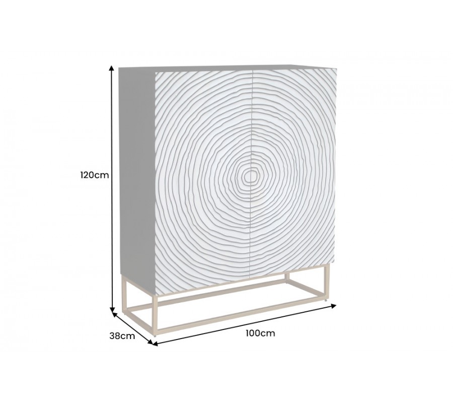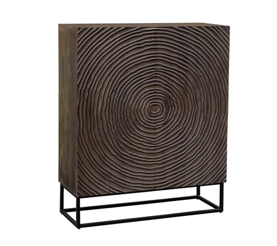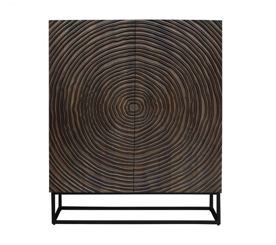 Moderná masívna tmavohnedá barová skrinka Tocón s dekoratívnym kružnicovým reliéfom s dizajnom letokruhov 120 cm